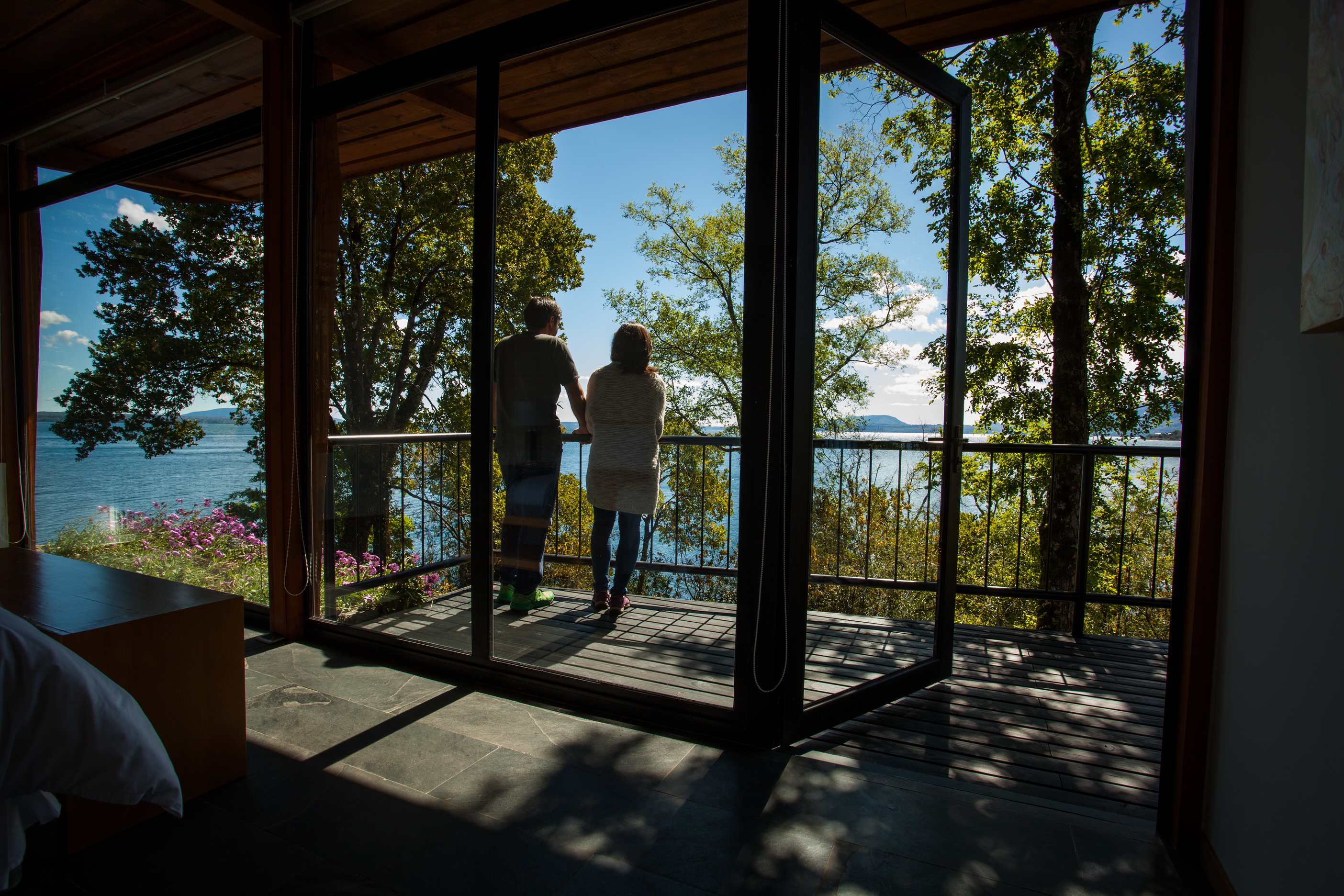 Rooms with panoramic views of Lake Villarrica, many featuring private fireplaces—ideal for cozy autumn nights.